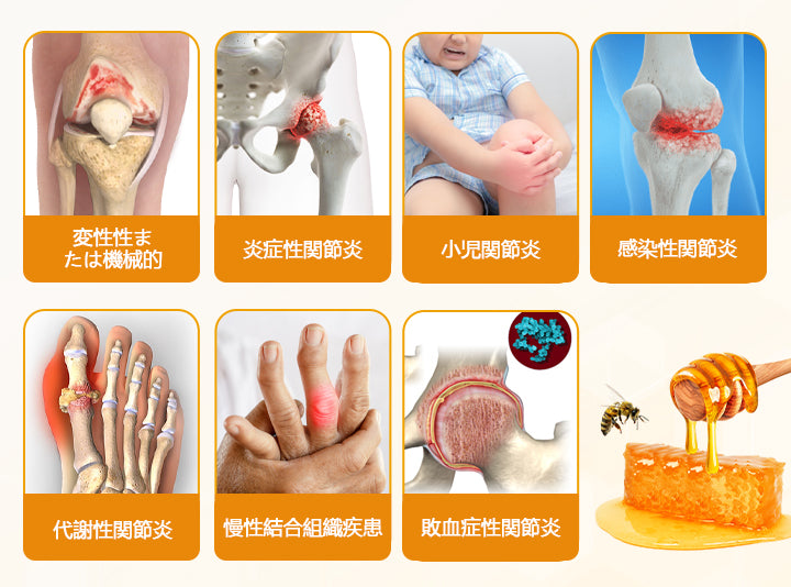 蜂毒の主要成分であるメリチンは、強力な抗炎症作用と鎮痛効果を持ち、関節炎に伴う痛みや腫れを効果的に軽減します。