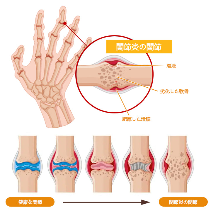 適切なケアを行わないと、関節炎・痛風・変形性関節症などは慢性的な痛み、こわばり、可動域の低下、腫れ、さらには長期的な障害を引き起こすことがあります。