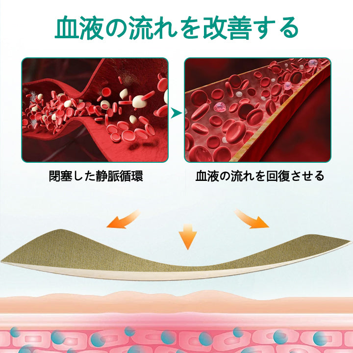 このパッチの革新的なデザインは、即時の快適さと長期的なサポートを提供し、静脈の健康と血行改善に最適な便利で効果的なソリューションです。